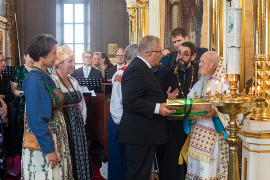 – Toivomme myös, että sadan vuoden päästä Jumala antaa lastenlastemme seistä tällä pyhällä paikalla, vakaina ortodoksisessa ja kristillisessä uskossaan, kohottaa äänensä lauluun yhdessä pyhien ja enkelien kanssa ja ylistää ja kunnioittaa taivaallista isäämme Jumalaa, hänen poikaansa Herraamme ja Vapahtajamme Jeesusta Kristusta ja kaikkipyhää hyvää ja eläväksitekevää Henkeä.  Aamen!