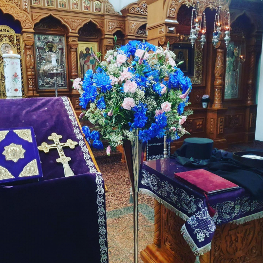Pääkuva ylhäällä: Igumeni Mikael vihki kuuliaisuusveli Jermogenin viitankantajamunkiksi tiistai-iltana 29. maaliskuuta. Viitankantajamunkiksi vihittäessä luetaan rukouksia vihittävän puolesta, leikataan hiuksia ja puetaan munkin asuun kuuluviin vyöhön, päällysviittaan ja klobukkiin eli hunnulliseen päähineeseen.