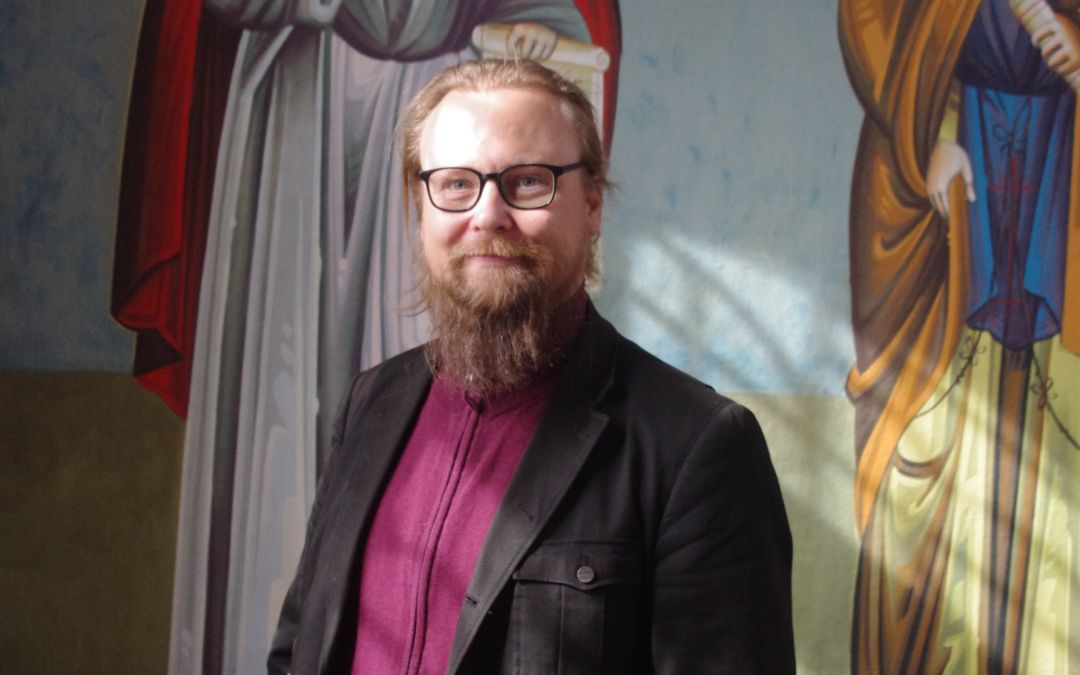 Pääkuva ylhäällä: Ortodoksisen teologian opiskelija Tommi Paju Pyhän Johannes Teologin ja Karjalan valistajien kirkossa Joensuun ortodoksisella seminaarilla.