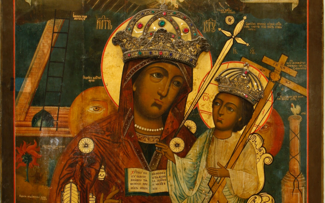 Kahdessa muussa kerrotaan kuvatun Magdalan Marian, ruhtinatar Olgan, Johannes Teologin, sadanpäämies Longinuksen ja keisari Konstantinin kasvot. Tämän pohjalta voi olettaa, että toisen ikonin aiheena oli Kristuksen ristiinnaulitseminen ja toisen Ristin kunnioittaminen.