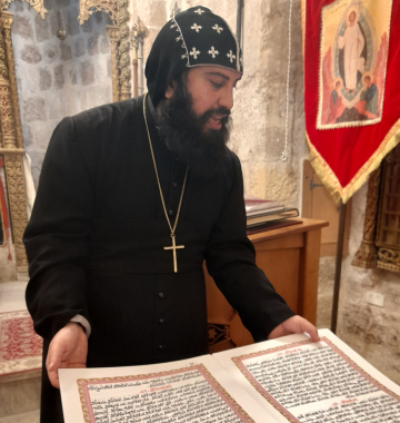 Syyrian ortodoksisessa Pyhän Markuksen luostarissa on vastassa munkki Dayroyo Boulus, yksi luostarin neljästä työntekijästä, eli piispasta ja kolmesta munkista.
